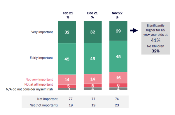 74% believe it is important that the Irish Government provides overseas aid, down from 77% in 2021