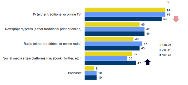 TV, newspapers/press and radio are the most frequently used sources for news and information
