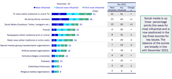 Greatest Influence on views and opinions on key issues