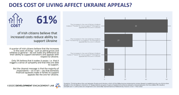 The survey also included a new section related to the impact of the war in Ukraine and the costs of living crisis on Irish attitudes to aid.