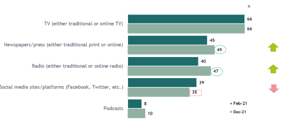 TV, newspapers/press and radio are the most frequently used sources for news and information