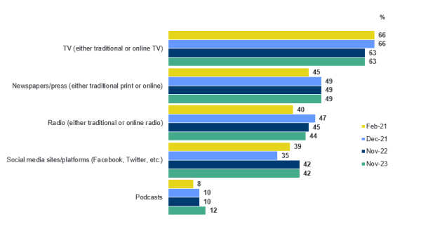 TV, newspapers/press and radio are the most frequently used sources for news and information