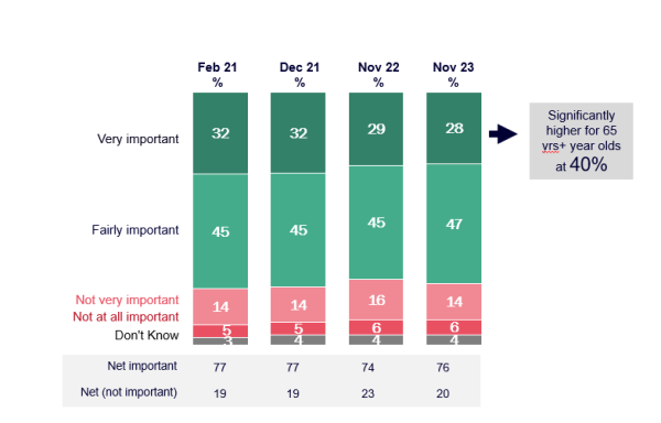 76% believe it is important that the Irish Government provides overseas aid, up from 74% in 2022