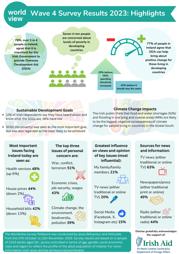 The survey ran from 17 October – 13 November 2023 among a nationally representative sample of 2,515 Irish adults to gauge their awareness and attitudes towards overseas development aid.