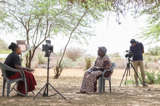 Image: Wanjiru Kimuya interviewing Catherine Bahati in Isiolo, Kenya. Videographer- Mackin Barasa. Photo by Mark Njoroge. Photo courtesy of Trócaire